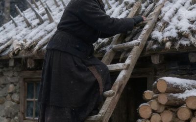 Starsza kobieta spędziła całe lato i jesień, mocując ostre drewniane kołki na dachu. Sąsiedzi byli przekonani, że straciła rozum... aż w końcu nadeszła zima.