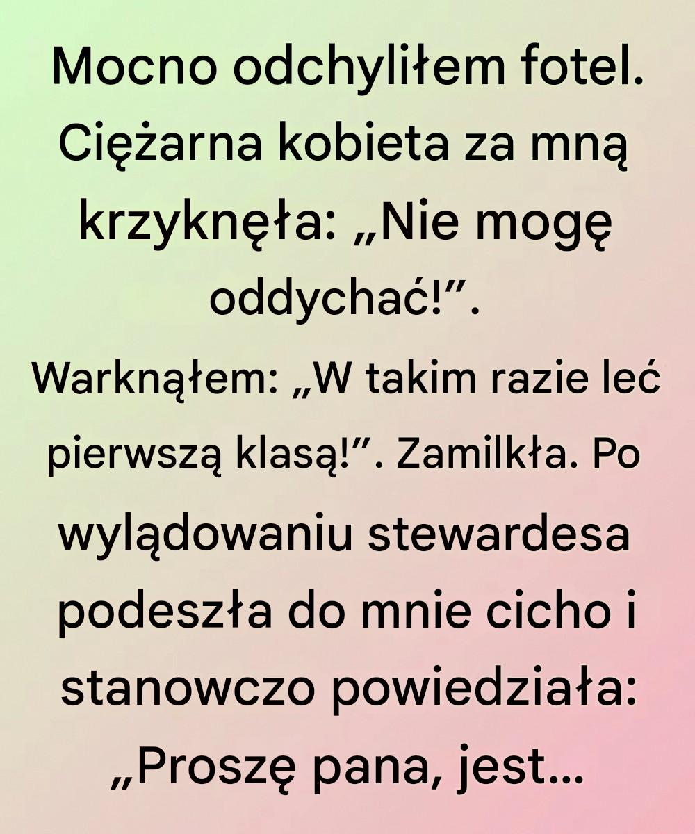 Wsiadałam do samolotu wyczerpana, zdeterminowana, by wycofać się w siebie i zignorować otaczający mnie świat. Wtedy ją zauważyłem: kobietę w ciąży siedzącą rząd za mną, opanowaną i spokojną mimo ciasnych miejsc siedzących i ciągłego ruchu w kabinie. Nie narzekała. Nie prosiła o specjalne traktowanie. A jednak, po prostu będąc tam, uświadomiła mi, jak mało uwagi poświęcam komukolwiek poza sobą. Każdy drobny ruch, każdy powściągliwy oddech, każdy cichy dyskomfort przypominał mi, że moja wygoda nie jest najważniejsza w tym miejscu.
